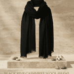 A premium accessory made from fine cashmere wool, hand-loomed for exceptional quality. The deep black tone is timeless, while feathered fringes add a delicate finish. Lightweight yet warm, this shawl is ideal for layering in cooler seasons and elevating evening wear.